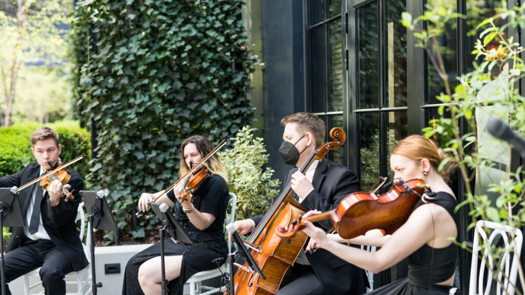 Shannonn and Kingsley exchanged vows in the semi-enclosed courtyard of the Sagamore Pendry Baltimore. The Sagamore Pendry is one of Baltimore’s most iconic wedding venues. We transformed the space into a magical garden filled with cascading cherry blossom-inspired florals, soft textures, and romantic details. This was accompanied by the string quartet from Lucy Black Entertainment. The courtyard felt intimate, elegant, and timeless, which was perfect for a couple beginning a new chapter together.